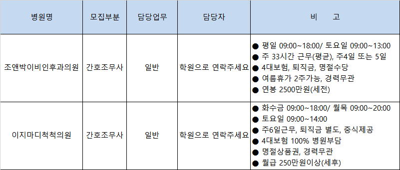 홈취업 및 진학구인&구직 구인&구직 20250년 12월 1주차 작성자 효중기념간호학원 작성일 2025-12-03 20:55 조회 80 좋아요 0 싫어요 0 인쇄 « 2025년 11월 4주차 2025년 12월 2주차 » 목록보기 답글쓰기 Powered by KBoard