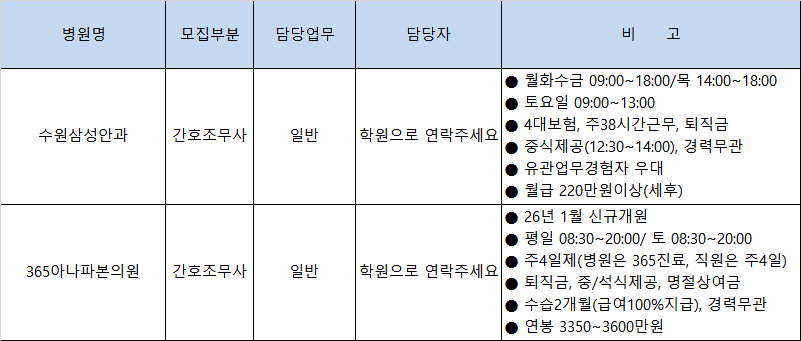 홈취업 및 진학구인&구직 구인&구직 2025년 12월 3주차 작성자 효중기념간호학원 작성일 2025-12-17 20:23 조회 58 좋아요 0 싫어요 0 인쇄 « 2025년 12월 2주차 2025년 12월 4주차 » 목록보기 답글쓰기 Powered by KBoard